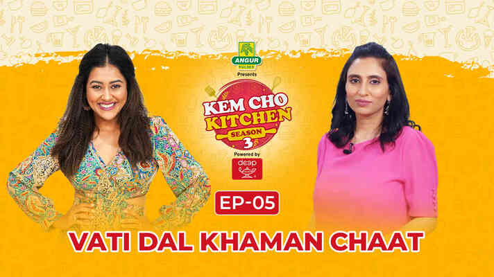 Pooja, the presenter of Kem cho Kitchen Season 3, invites celebrity chef Purvee once again, who is known for her inventive takes on traditional Gujarati vegetarian foods, in the fifth episode to showcase her famous Vati Dal Khaman Chaat.